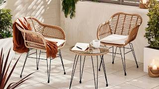 We adore this little set. It's bang on trend with the mix of boho rustic and industrial Scandi stylings. The chair and table frames are sturdy steel wrapped in popular and practical grey PE rattan, with the legs black powder-coated steel. The round compact bistro table features a rattan tabletop with clear tempered glass topper, keeping it feeling light and bright. The grey fabric seat pads add some extra comfort. This design screams sun-drenched coffees in the early morning, or evening cocktails by a firepit.