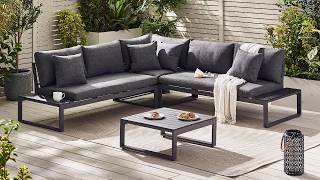 Width (cm) 160 Height (cm) 68 Depth (cm) 78 Colour Grey Material Aluminium Feature 1 Grey aluminium metal and grey wood effect outdoor corner sofa with coffee table Feature 2 Modern elegant design with built-in slatted side tables Feature 3 UV and weather resistant sofa frame and table Feature 4 Soft padded grey cushions are splash-proof Feature 5 Includes a FREE water resistant cover + 2 year warranty Chair Finish Powder Coated Chair Frame Material Aluminium Feet Material Plastic Chair Upholstery Material Fabric Water Resistant Cushion Yes Chair Cushion Colour Grey UV Resistant Yes Chair Frame Colour Grey Chair Depth (cm) 78 Chair Width (cm) 160 Chair Height (cm) 68 Chair Back Height (cm) 38 Seating Depth (cm) 70 Chair Weight (kg) 10.5 Seat Height (cm) 30 Seat Padding Thickness (cm) 10 Back Padding Thickness (cm) 20 Table Shape Square Table Colour Grey Table Material Aluminium Table Base Width (cm) 70 Table Surface Thickness (cm) 6.5 Table Type Coffee table Number Of Seats 6 Table Height (cm) 30 Table Width (cm) 70 Table Length (cm) 70 Seat Weight Capacity PP (kg) 120 Table Weight Capacity (kg) 35 delivery_time !Please Note! - Free delivery with earliest delivery in 2 working days* delivery_pick_a_day Pick a delivery day to suit you delivery_door_to_door Delivered to the room of your choice, up to two flights of stairs Product Weight (kg) 52.5 Assembly Details Assembly Required Additional Lead Time 1 Product_Stock_Type bed merch_category Garden Sofa Sets Finish Powder Coated _promo_message Garden Sale Now On | Free and Fast Delivery Sister SKUs DUB-OUT-SOF-SET-6-WHT Display Variant Yes Swatch Colour Dark Grey Table Finish Powder Coated merch_rank 996 USP Feature 1 Free Protective Cover Included USP Feature 1 Description Waterproof outdoor cover included at no extra cost to help protect your furniture from rain, dirt and debris when not in use. USP Feature 2 All-Season Outdoor Durability USP Feature 2 Description Built from materials designed to withstand the changing weather conditions. USP Feature 3 Powder-Coated Aluminium Frame USP Feature 3 Description Rust-resistant aluminium frame provides strength, stability and long-term outdoor durability. USP Feature 4 UV-Resistant Materials USP Feature 4 Description Designed to help prevent fading and sun damage, maintaining colour and appearance over time. USP Feature 5 Contemporary Outdoor Styling USP Feature 5 Description Clean lines and modern finishes designed to complement a variety of garden spaces. USP Feature 6 Easy Clean USP Feature 6 Description Smooth, wipe-clean surfaces make everyday cleaning quick and hassle-free. Collection Dubai USP Feature 1 Image https://s3-eu-west-1.amazonaws.com/cdn.production.aws.eu-w1.pimberly.com/public/asset/raw/5fbbce1a2fd14f001bd75232/23a93167/69bc217804511b42cc00011d/DUB-OUT-SOF-6-GRY_USP1.jpg USP Feature 2 Image https://s3-eu-west-1.amazonaws.com/cdn.production.aws.eu-w1.pimberly.com/public/asset/raw/5fbbce1a2fd14f001bd75232/23a93167/69bc217804511b42cc00011e/DUB-OUT-SOF-6-GRY_USP2.jpg USP Feature 3 Image https://s3-eu-west-1.amazonaws.com/cdn.production.aws.eu-w1.pimberly.com/public/asset/raw/5fbbce1a2fd14f001bd75232/23a93167/69bc217804511b42cc00011f/DUB-OUT-SOF-6-GRY_USP3.jpg USP Feature 5 Image https://s3-eu-west-1.amazonaws.com/cdn.production.aws.eu-w1.pimberly.com/public/asset/raw/5fbbce1a2fd14f001bd75232/23a93167/69bc217804511b42cc000121/DUB-OUT-SOF-6-GRY_USP5.jpg USP Feature 6 Image https://s3-eu-west-1.amazonaws.com/cdn.production.aws.eu-w1.pimberly.com/public/asset/raw/5fbbce1a2fd14f001bd75232/23a93167/69bc217804511b42cc000122/DUB-OUT-SOF-6-GRY_USP6.jpg USP Feature 4 Image https://s3-eu-west-1.amazonaws.com/cdn.production.aws.eu-w1.pimberly.com/public/asset/raw/5fbbce1a2fd14f001bd75232/23a93167/69bc217804511b42cc000120/DUB-OUT-SOF-6-GRY_USP4.png -