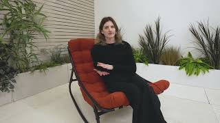 The frame is constructed from a sturdy black powder coated steel frame, with flexible back strap slats to support the cushion, and resting on stylish curved trapezoid legs that will allow you to rock the chair. The plump cream cushion is splash proof (so if any spills occur, pick up the cushion and give it a firm pat on the underside to encourage the droplets to roll off). However, the cushion should not be left outside or in damp conditions. Store it somewhere warm and dry. If it does get wet then allow it to fully dry somewhere warm before you store them. This set includes a FREE water resistant cover but please note, this is not fully waterproof and you should still store your cushion somewhere dry during wet weather and through winter. Assembly required - easy to follow instructions included.