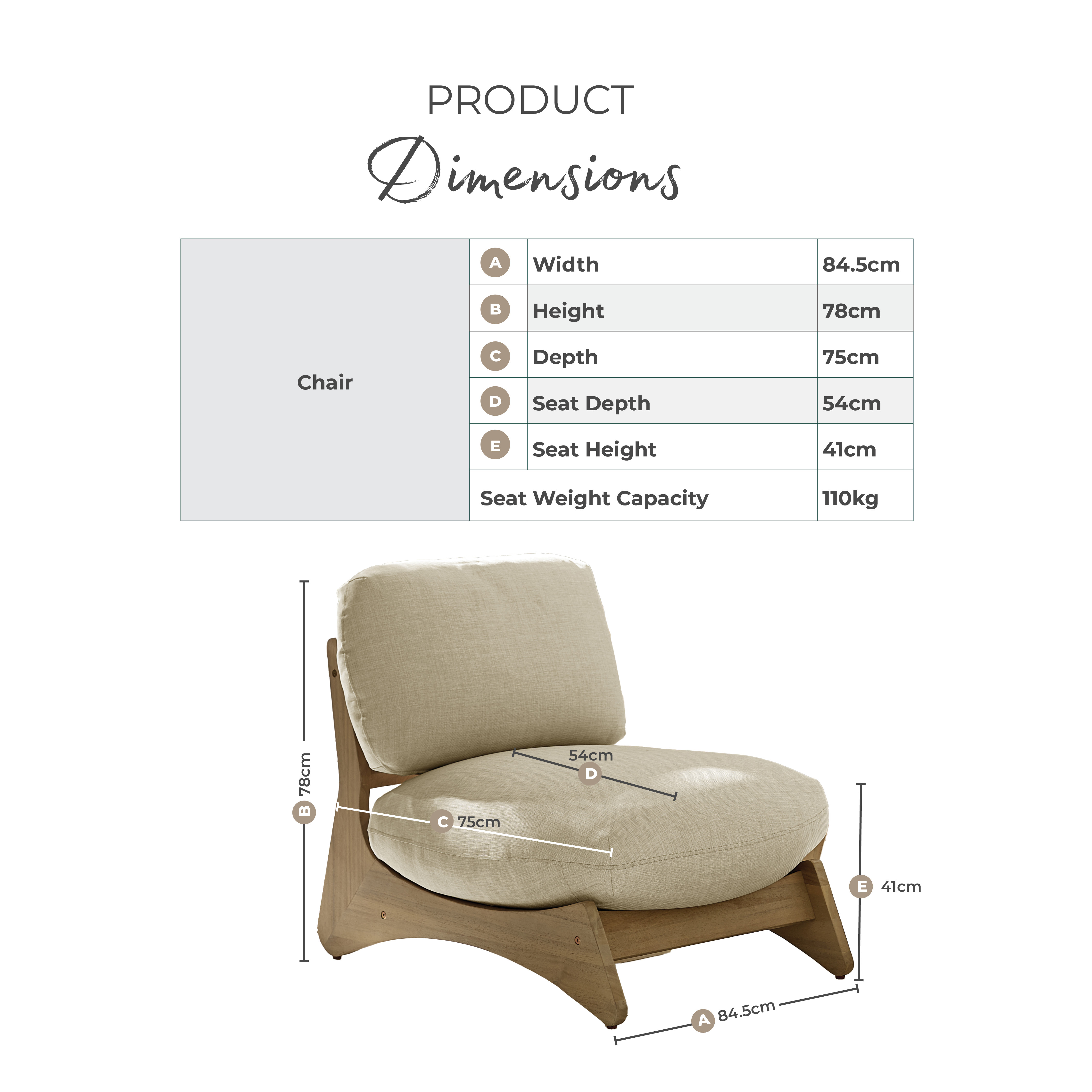| Feature 3 | Cream Olefin fabric cushions with luxury linen-look texture |