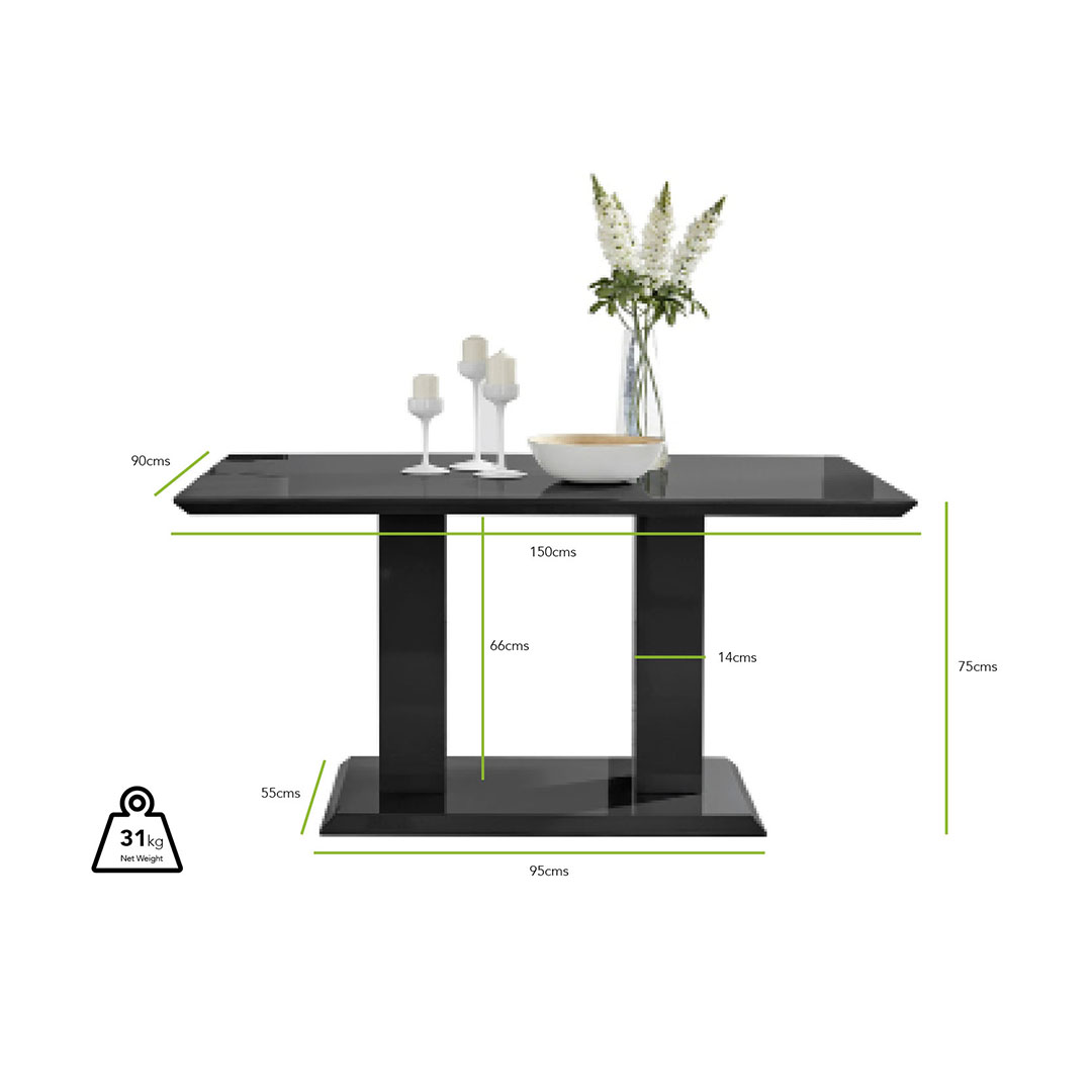 The grand Imperia table combines both style and quality at a price that cannot be beaten! The dining table boasts a large 150x90cm surface leaving plenty of room for dining with guests. Beautifully finished with a slick high gloss lacquer surface the table is a real stand out and would provide a modern look to any home! Seamlessly fitting into any dining area the Imperia table really is a must have! The high gloss finish also allows an easy to maintain and clean surface to keep the table looking brand new for years to come!