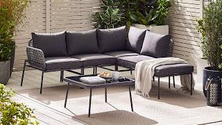 Our Maldives 5 Seater black metal and beige rattan outdoor corner sofa with taupe coloured cushions and glass-topped coffee table will add some relaxed entertaining and relaxing space to your outdoor area, whether it's a patio, deck or even the conservatory. This is a gorgeous design that serves up boho laid back vibes with the woven PE rattan along with a splash of industrial Scandi flair through those black powder-coated steel tapered legs. The matching square glass-topped coffee table creates a focal point and a place for drinks, snacks, or even an informal lunch. The taupe seat cushions are 8cm thick and the back cushions are 6cm thick, so you can relax in comfort. The glass table top is 5mm tempered glass which will be durable but keep the set feeling light and airy. The steel frame and table are UV and weather resistant so shouldn't fade. The cushions are splash proof (so if any spills occur, pick up the cushion and give it a firm pat on the underside to encourage the droplets to roll off). However, the cushions should not be left outside or in damp conditions. Store them somewhere warm and dry. If they do get wet then allow them to fully dry in the sun or somewhere warm before you store them. This set includes a FREE water resistant cover but please note, this is not fully waterproof and you should still store your cushions somewhere dry during wet weather and through winter. We're excited to bring you our new outdoor range developed in-house by our product design team! We've overseen the process, from creating initial designs to hand-selecting the colours and fabrics. So, you can rest assured that you'll receive a Furniturebox bespoke design that won't compromise on style or comfort and won't break the bank!