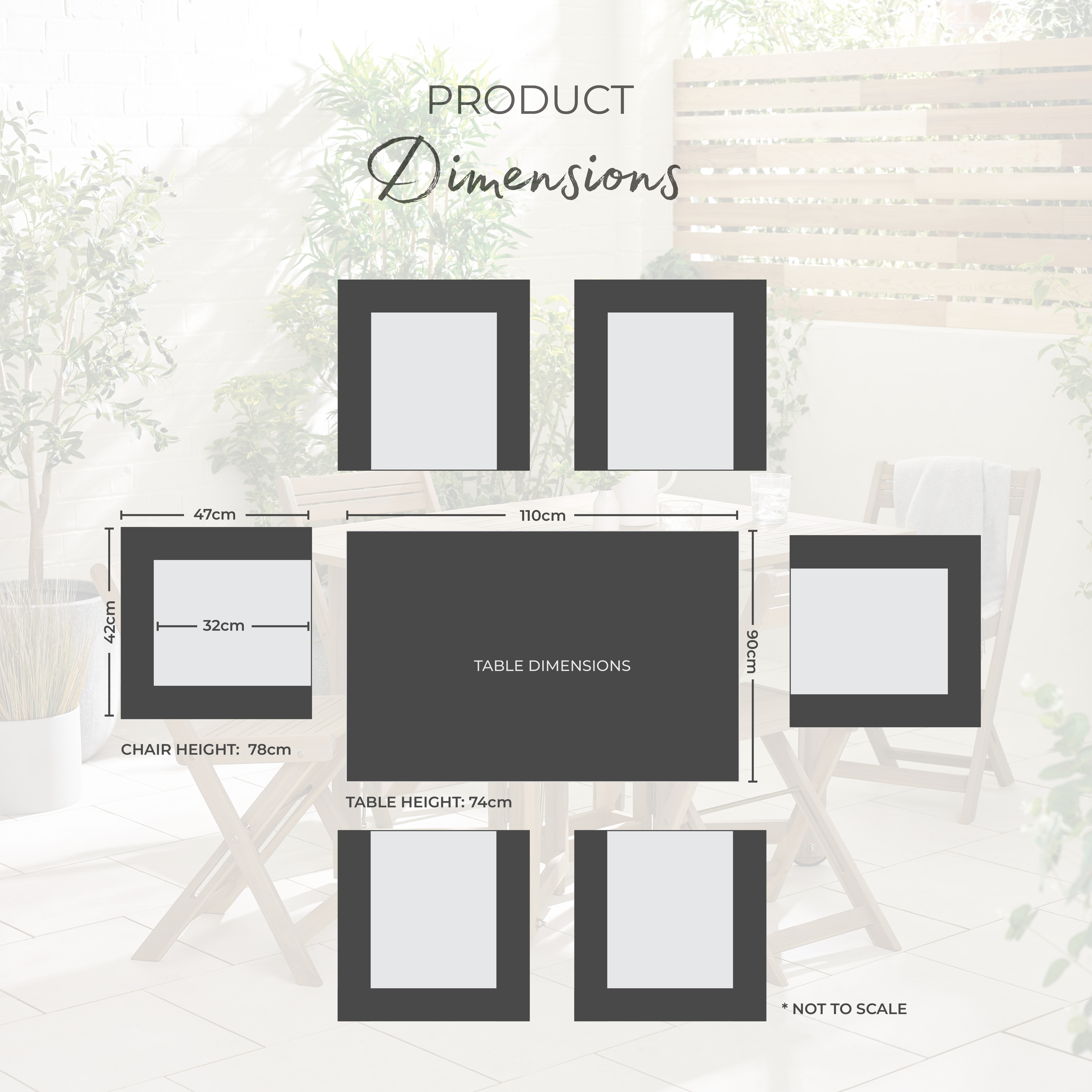 Width (cm) 90 Height (cm) 74 Depth (cm) 110 Colour Natural Material Wood Finish Natural Feature 1 Solid FSC® certified acacia wood outdoor dining set in teak stain colour Feature 2 Features drop leaf folding outdoor table & 4 folding wooden chairs Feature 3 Chairs slot inside table when flat for easy storage Feature 4 No assembly required Feature 5 Comes fully assembled and with 1 year warranty delivery_time Free next working day delivery available on orders before 8pm* delivery_pick_a_day Pick a delivery day to suit you delivery_door_to_door Door to door delivery. Delivery to flats cannot be taken up stairs or in lifts Chair Finish Natural Chair Frame Material Wood Feet Material Plastic UV Resistant Yes Chair Frame Colour Natural Chair Depth (cm) 48 Chair Width (cm) 42 Chair Height (cm) 78 Chair Back Height (cm) 33 Seating Depth (cm) 32 Chair Weight (kg) 3.2 Seat Height (cm) 45 Table Shape Rectangular Table Colour Natural Table Material Wood Table Finish Natural Table Base Width (cm) 90 Table Surface Thickness (cm) 1.8 Table Type Dining table Number Of Seats 4 Table Height (cm) 74 Table Width (cm) 90 Table Length (cm) 110 Seat Weight Capacity PP (kg) 110 Table Weight Capacity (kg) 75 Product Weight (kg) 30 Assembly Details Assembly Required Date Listed 2025-01-28T00:00:00.000Z Additional Lead Time 0 merch_category Garden Dining Sets _promo_message Save 20% on Garden Furniture With Code: EARLY20 custom_badge #914e3b|#ffffff|20% off with code Display Variant Yes Swatch Colour Wood Water Resistant Cushion Yes merch_rank 1982 -